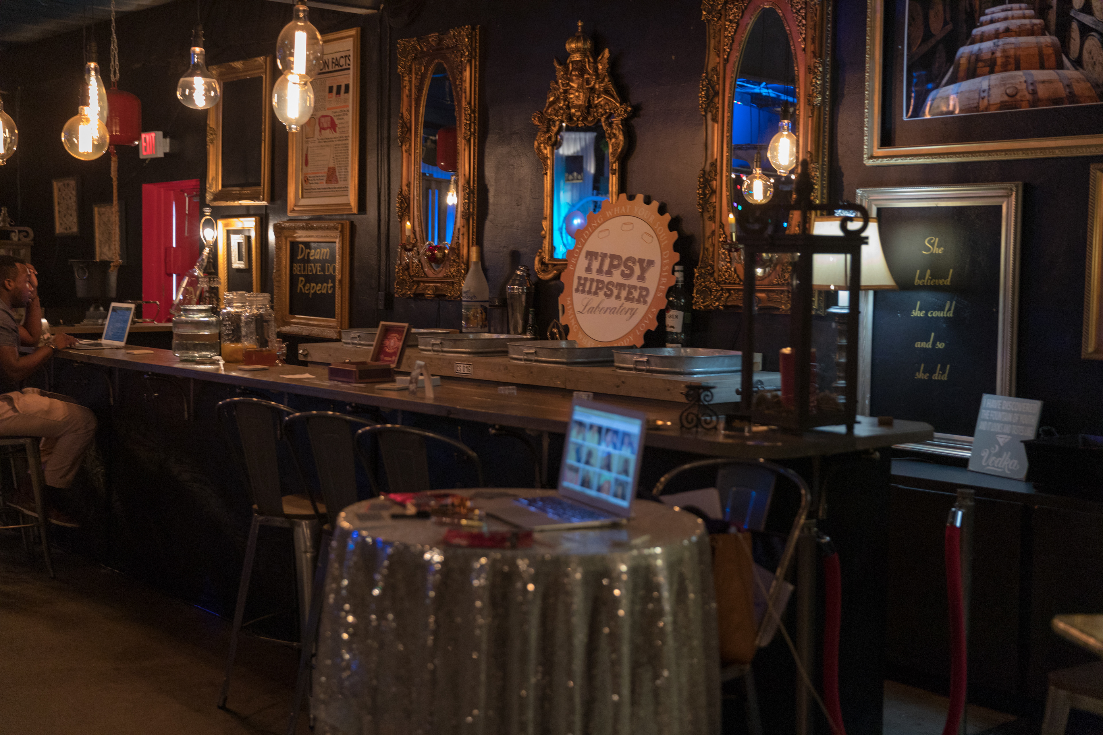 This was a unique networking event. Businesses met together to drink liquor and build vision boards to illustrate their business. It was held at the beautiful Epicenter in Tampa Fl.