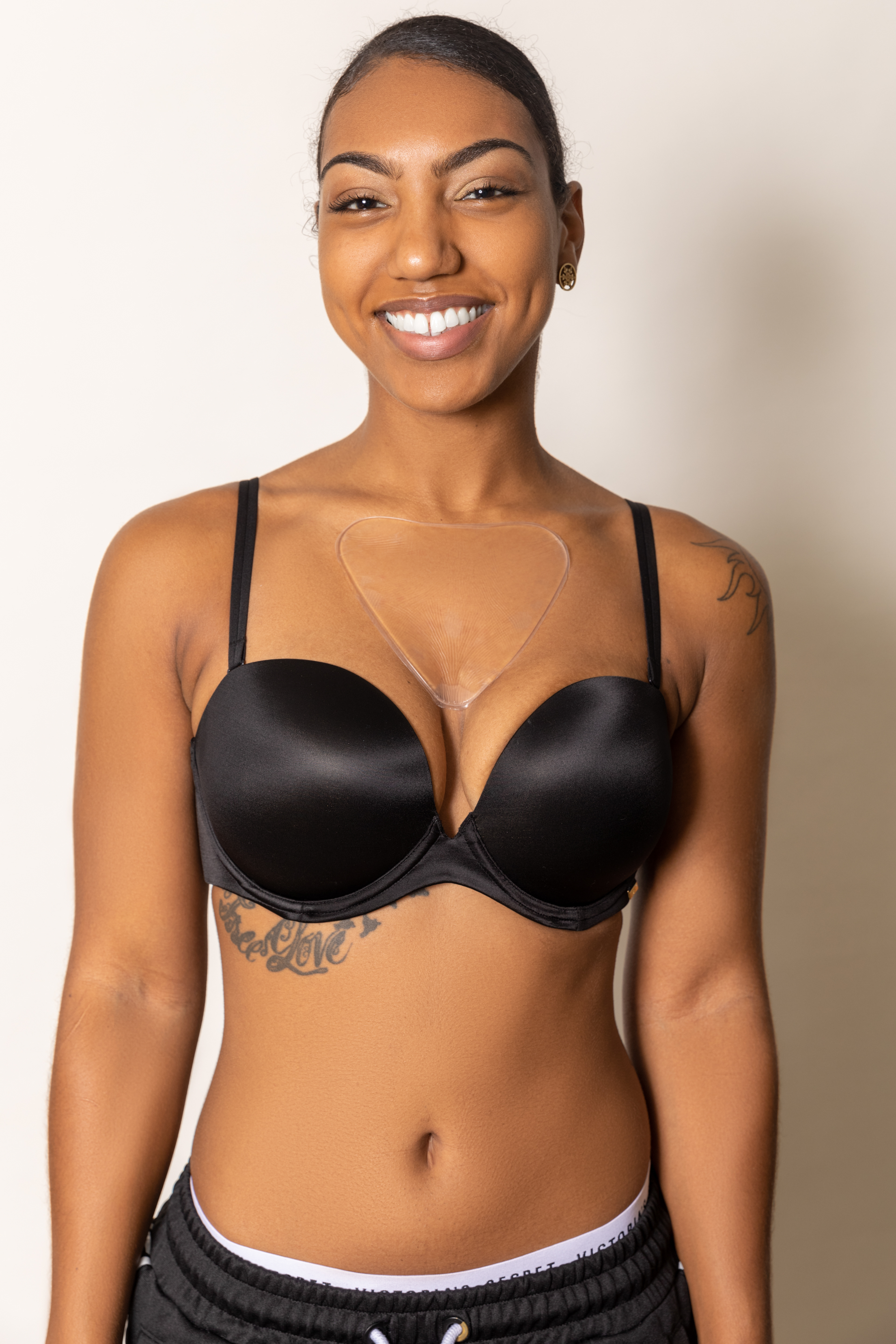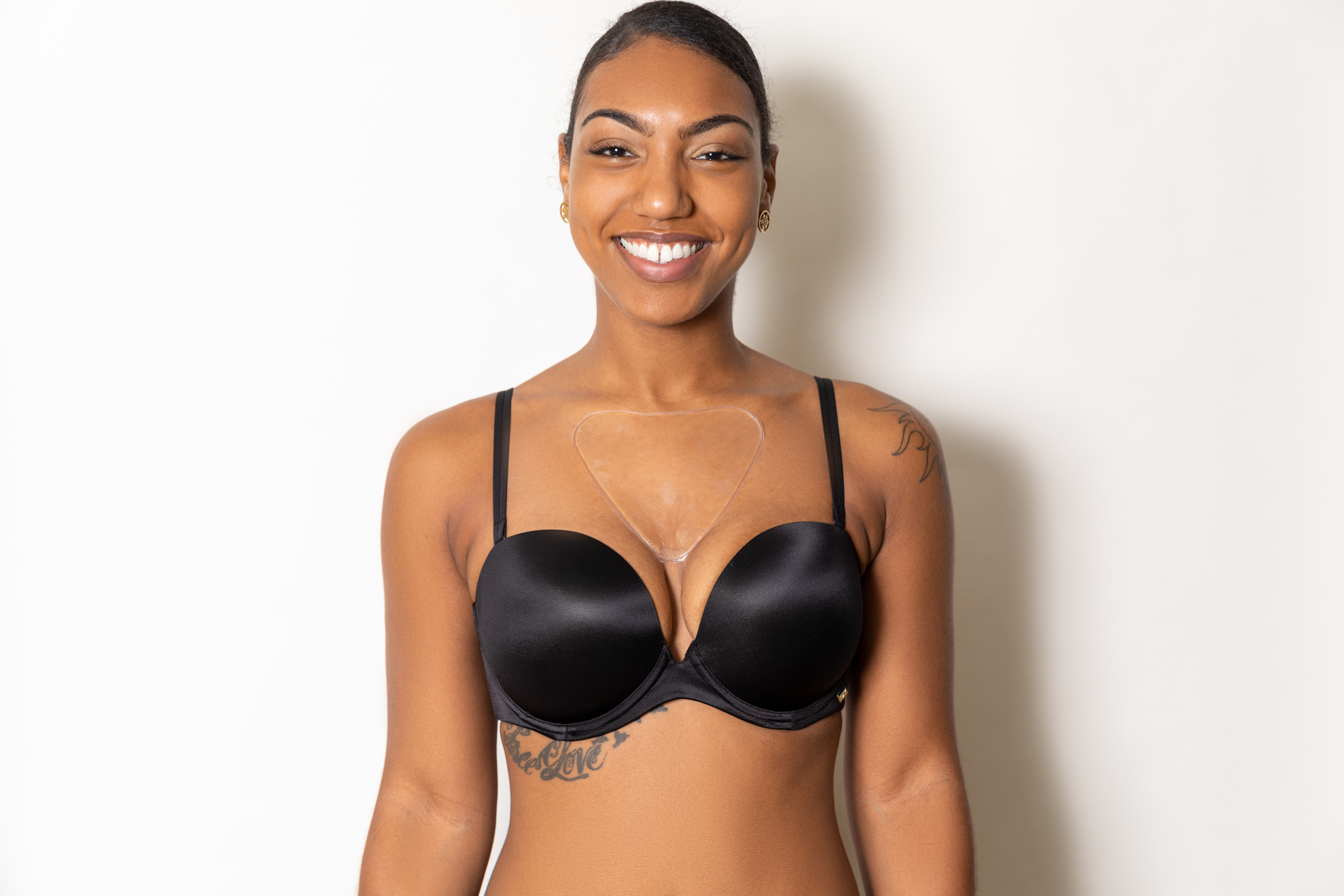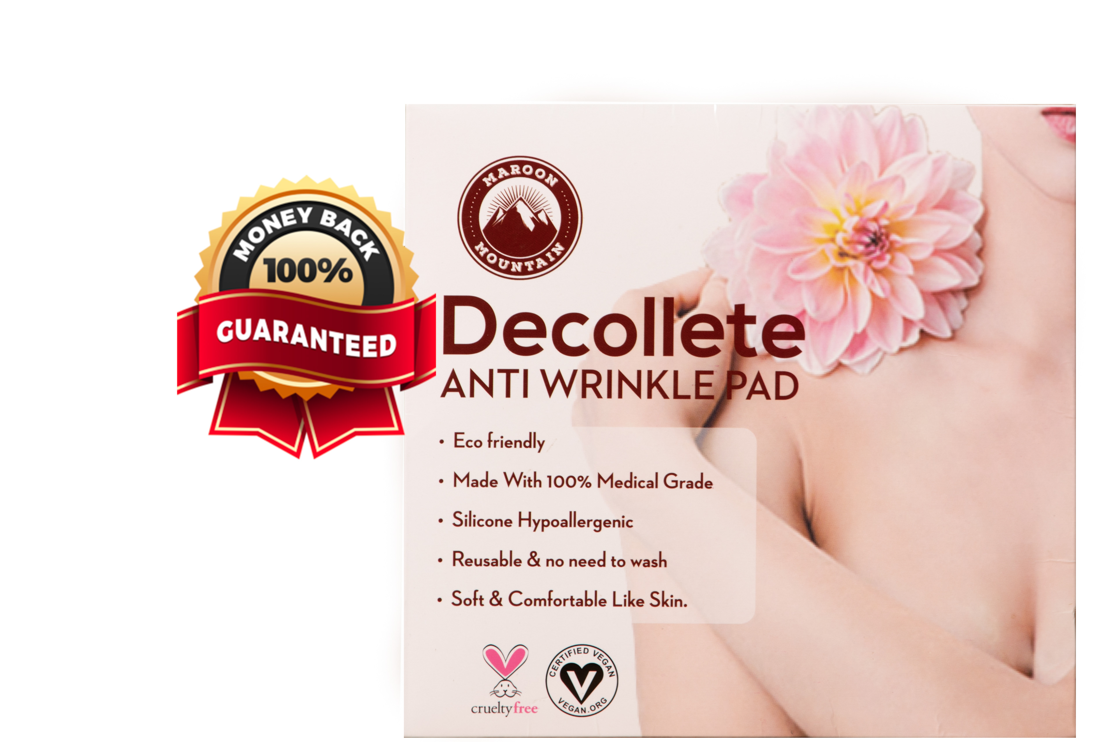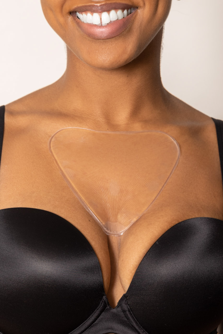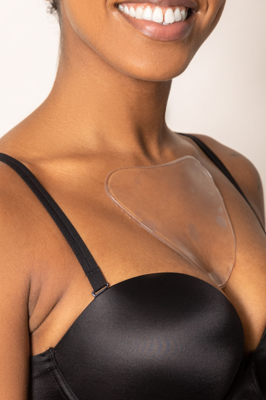 A vegan anti wrinkle pad for women's chest area.