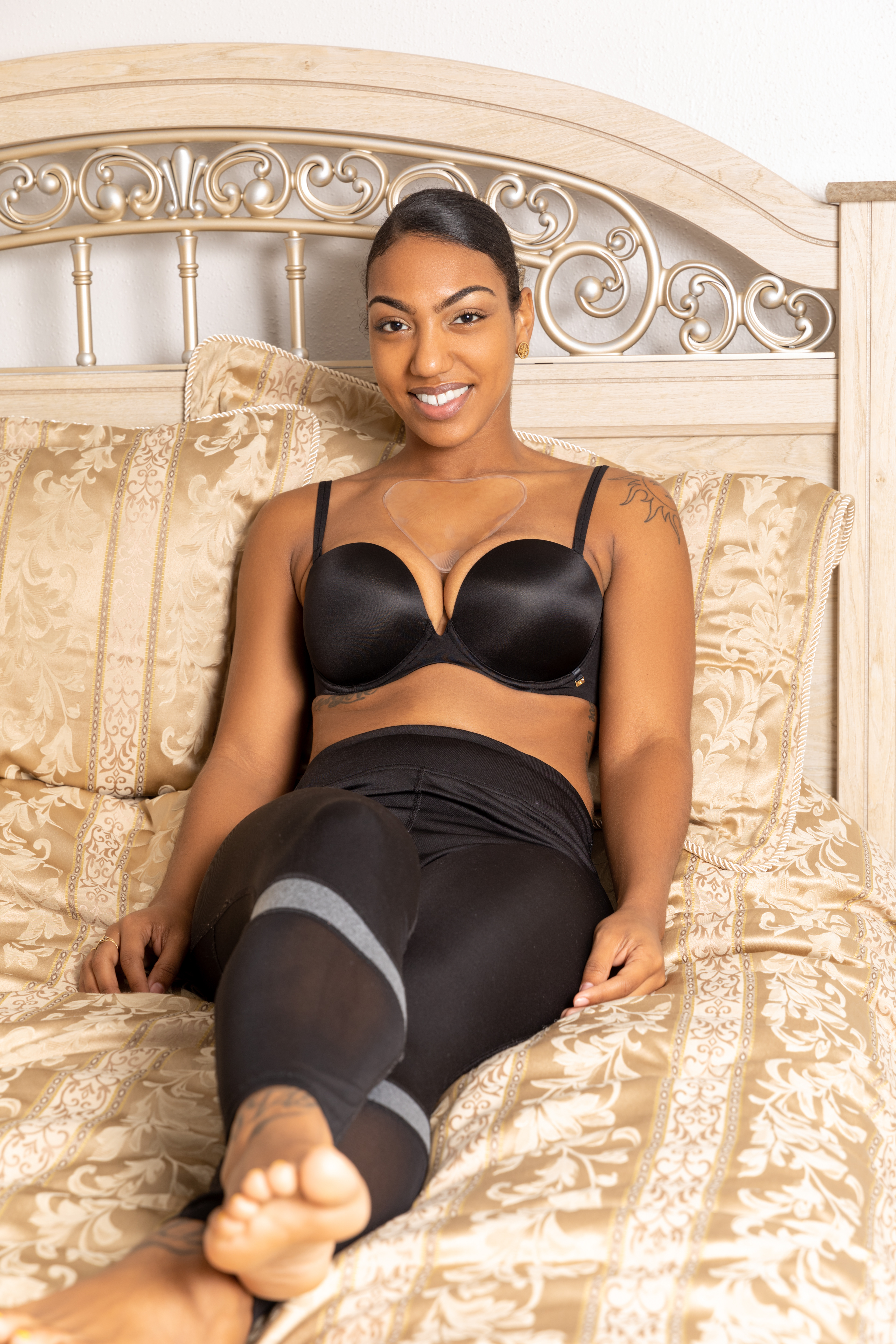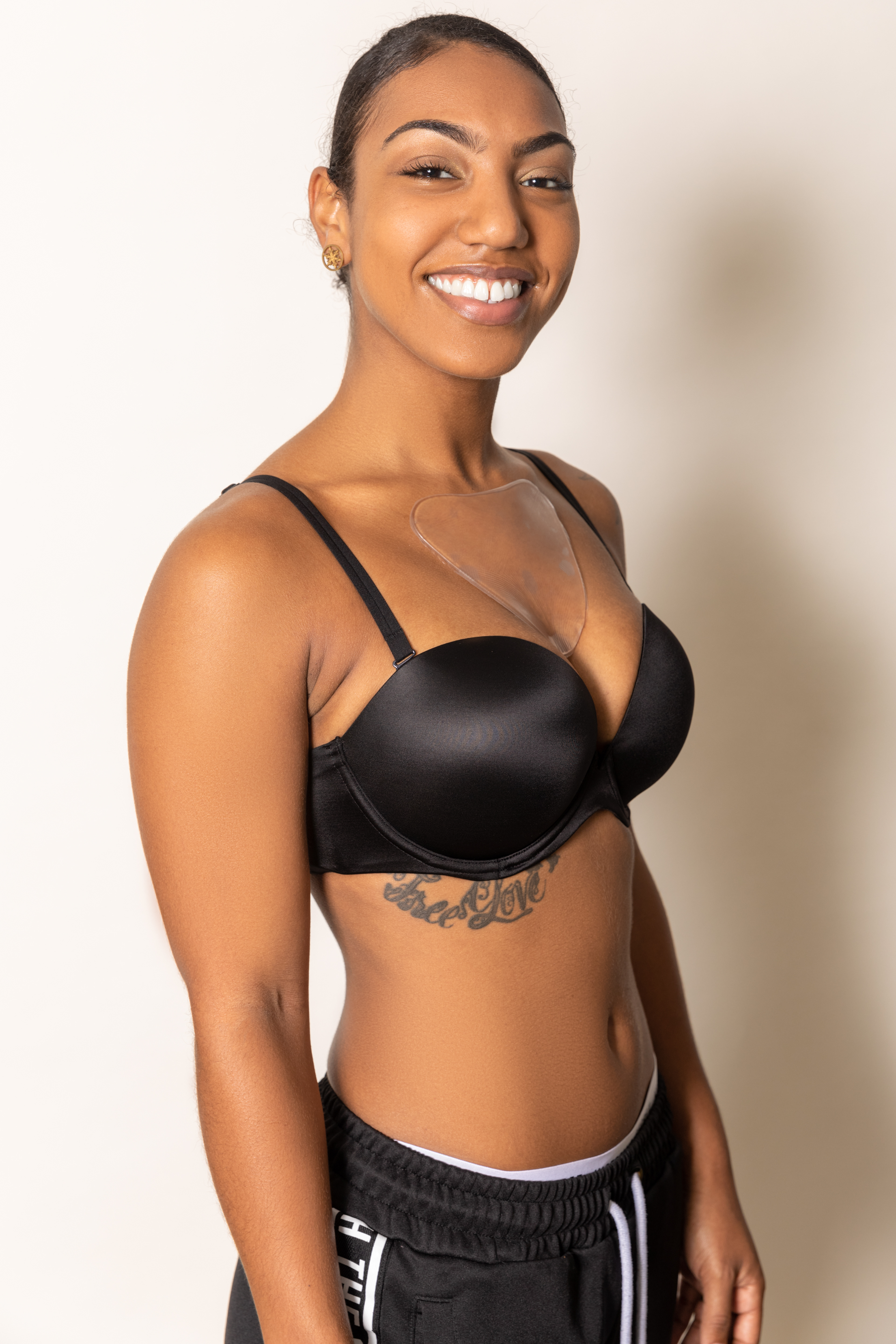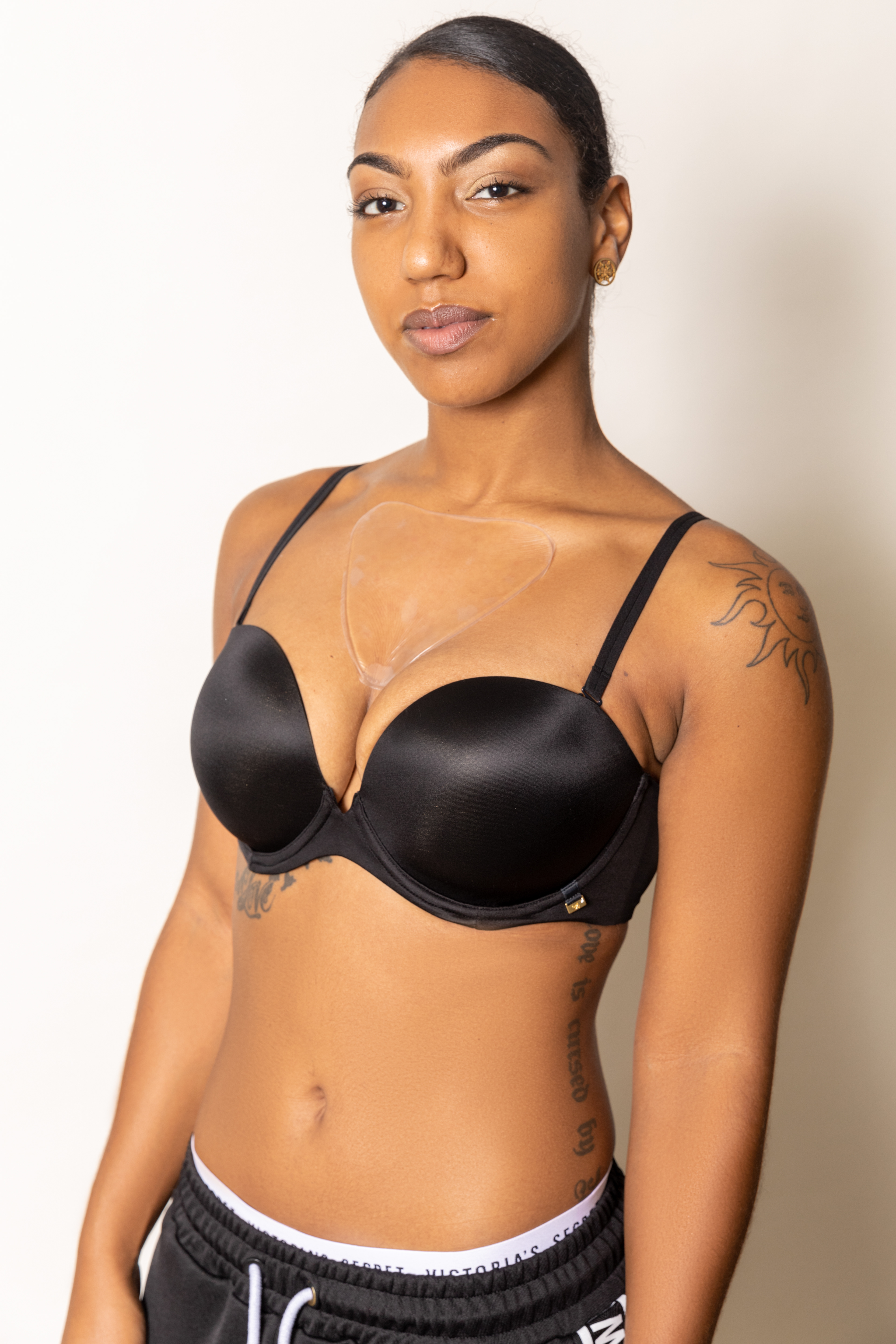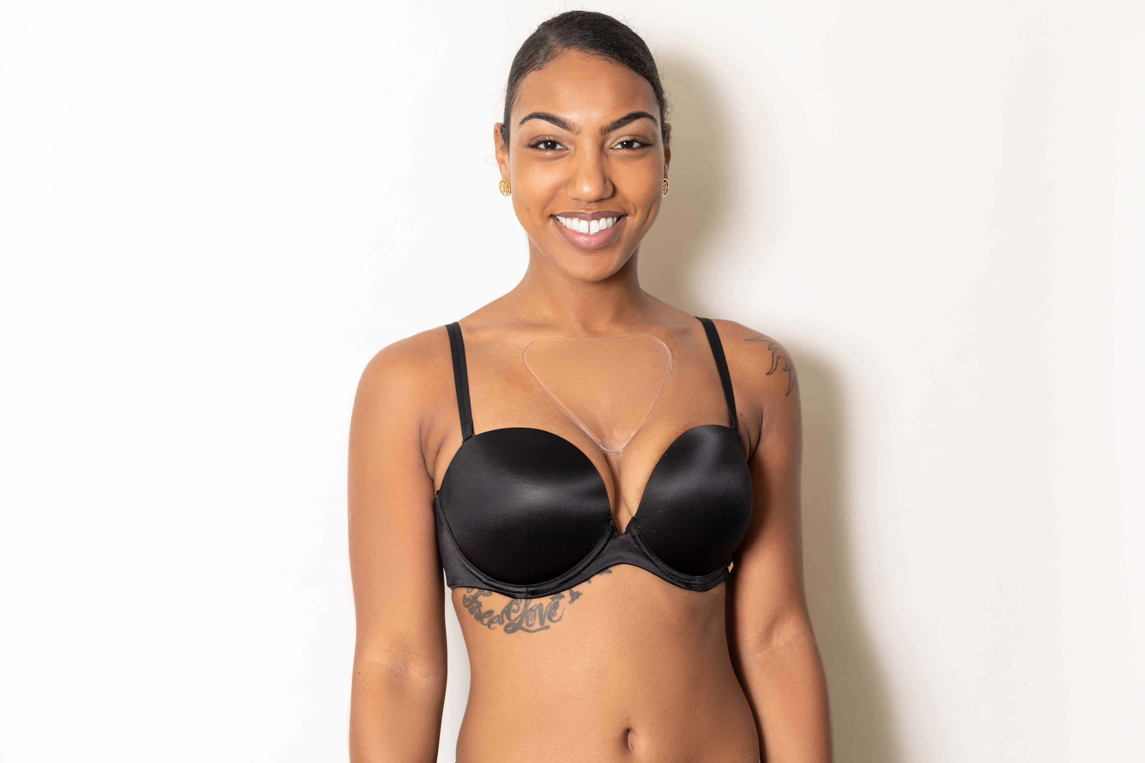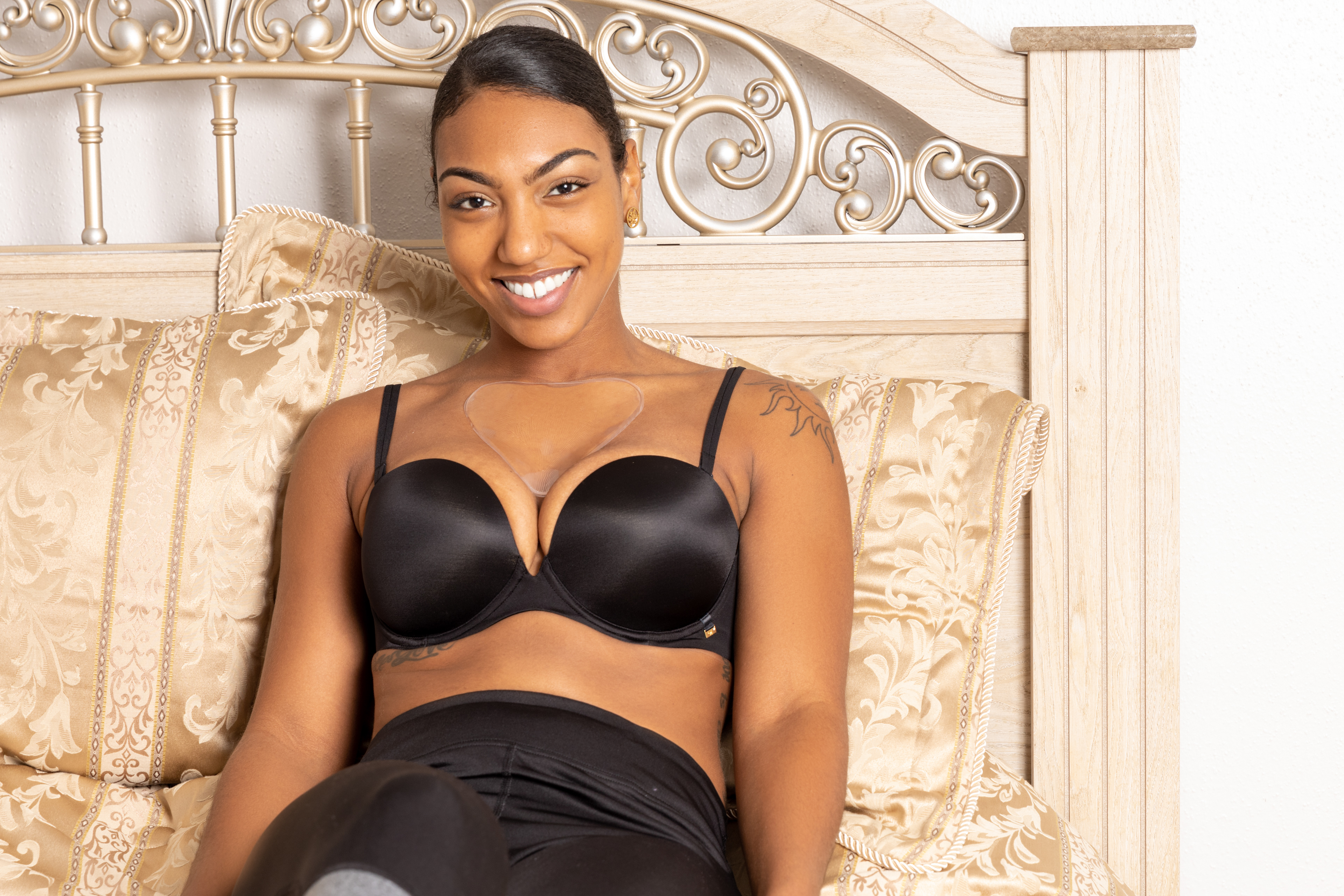 A vegan anti wrinkle pad for women's chest area.