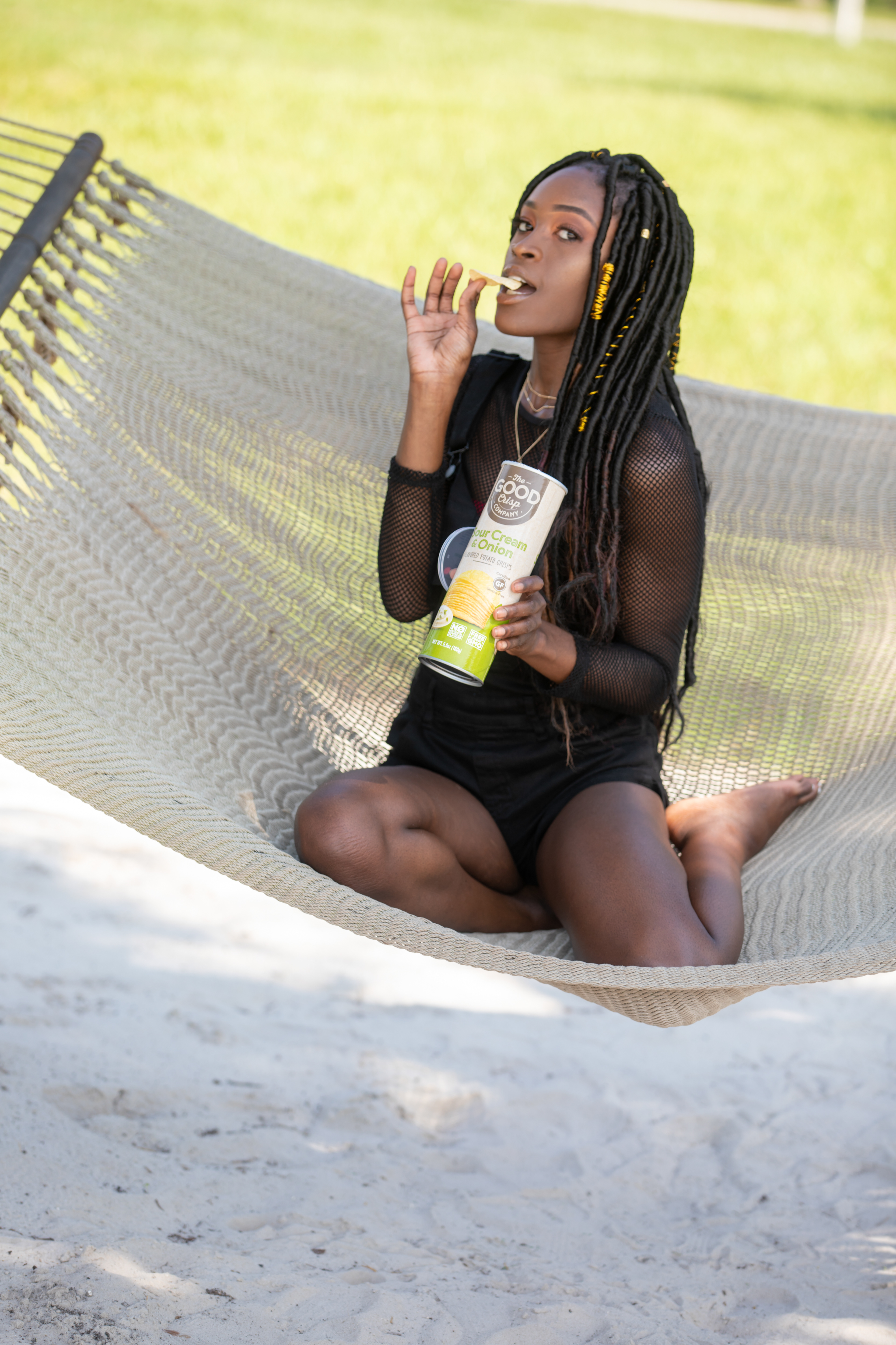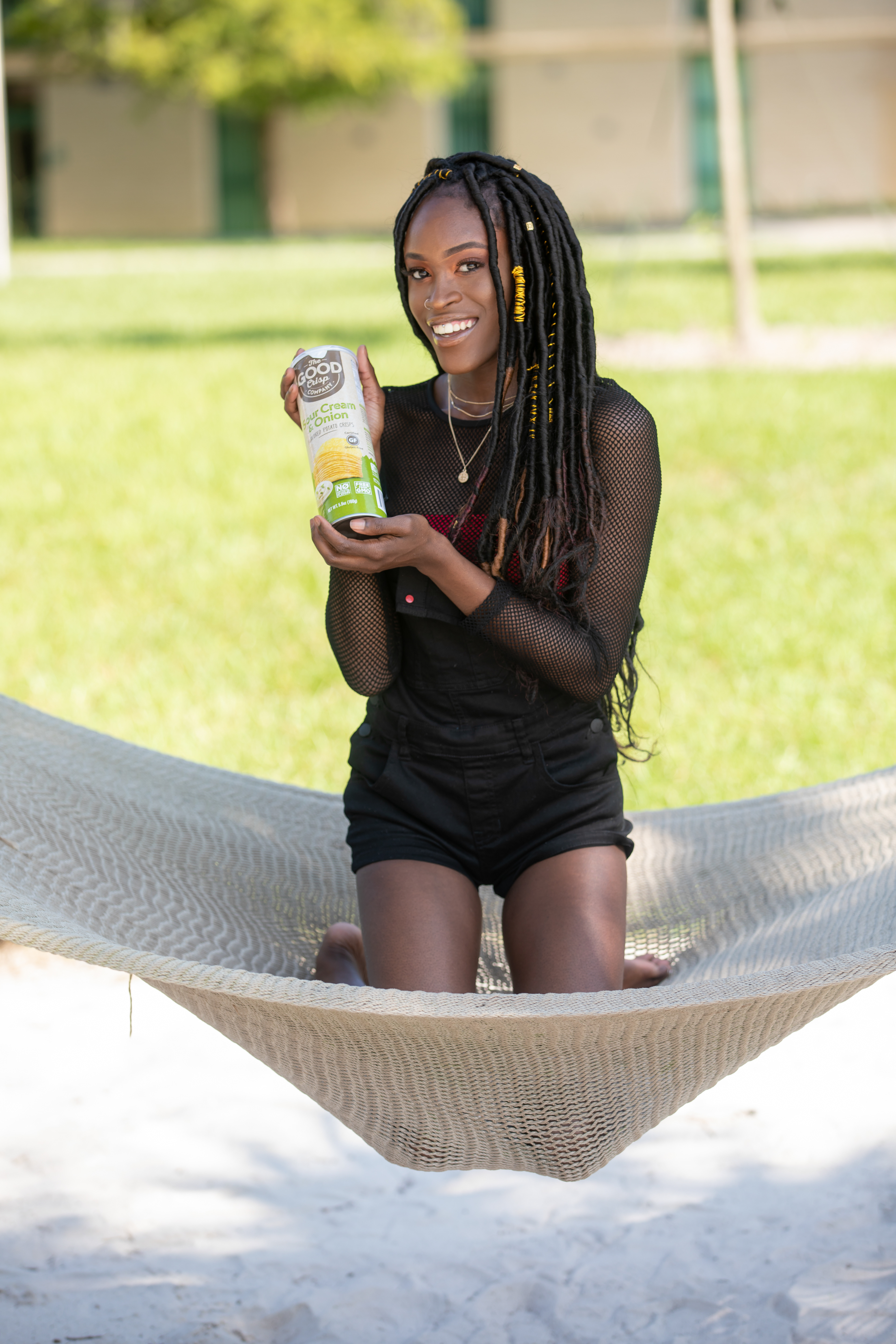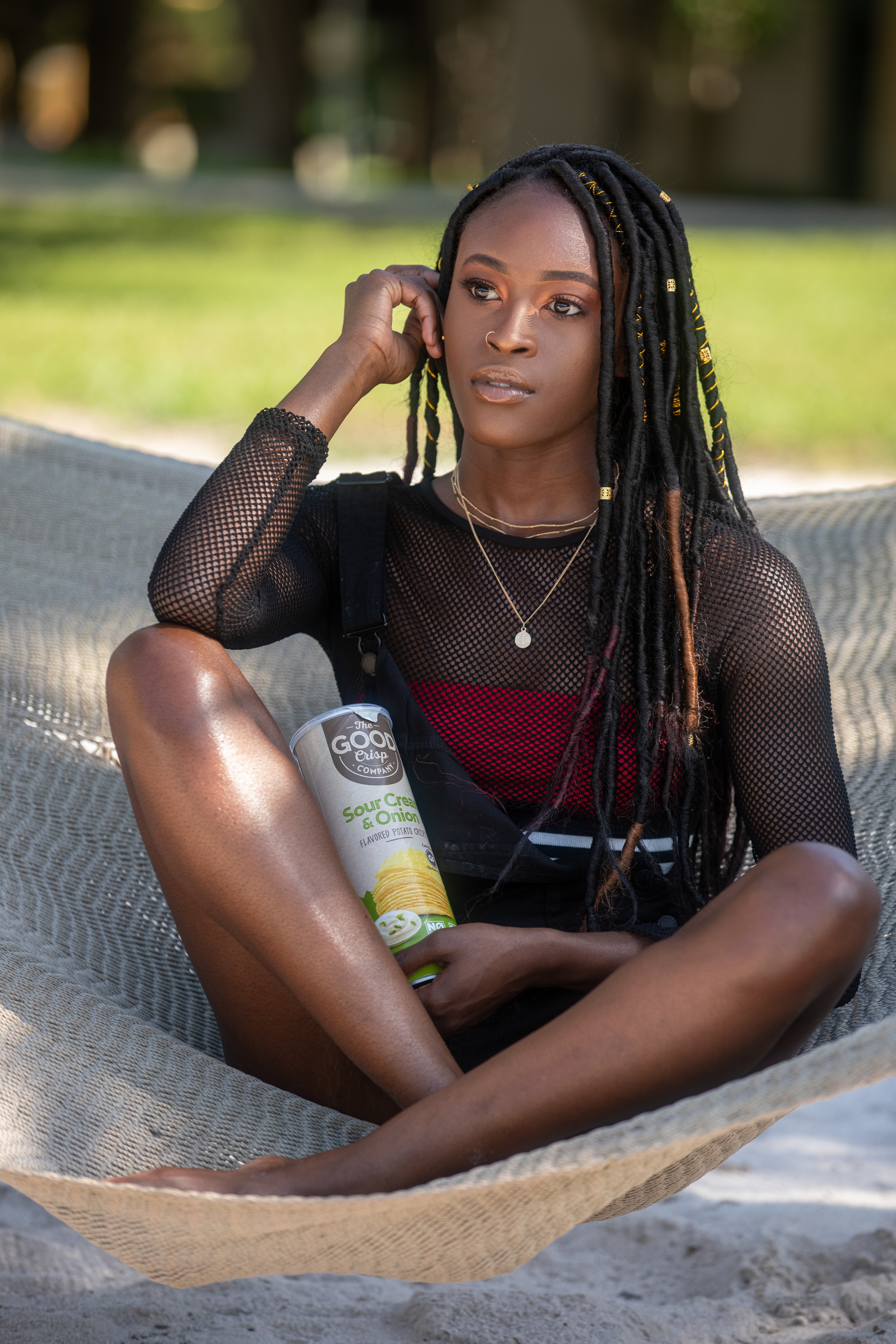 The Good Crisp is an organic GMO free potato chip alternative. It is very similar to Pringles. Founder reached out for a shoot featuring a young woman in a hammock.